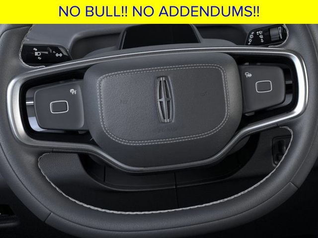 2025 Lincoln Navigator FCTP 10-Speed Automatic Equipment Group 202A Reserve II, Heavy-Duty Trailer Tow Package (26mm Engine Radiator and Trailer Brake Controller), Jet Appearance Package (Black Accent Badge, Black Accent Interior Pack, Black Beltline Molding, Black Painted Roof Rails, Front Bumper Fascia, Lincoln Lit Star, Unique Lincoln Grille Pillar Black Surround, and Wheels: 22' High-Gloss Ebony Aluminum), 28 Speakers, 3rd row seats: split-bench, 4-Wheel Disc Brakes, ABS brakes, Adaptive suspension, Adjustable pedals, Air Conditioning, Alloy wheels, AM/FM radio: SiriusXM with 360L, Apple CarPlay/Android Auto, Audio memory, Auto High-beam Headlights, Auto Htd Ventilated Premium Lthr Captain's Chair, Auto Start-Stop Technology, Auto tilt-away steering wheel, Auto-dimming door mirrors, Auto-dimming Rear-View mirror, Auto-leveling suspension, Automatic temperature control, Brake assist, Bumpers: body-color, Compass, Delay-off headlights, Driver door bin, Driver vanity mirror, Driver's Seat Mounted Armrest, Dual front impact airbags, Dual front side impact airbags, Electronic Stability Control, Emergency communication system: 911 Assist, Exterior Parking Camera Rear, First Aid Kit w/Lincoln Logo, Four wheel independent suspension, Front anti-roll bar, Front Bucket Seats, Front dual zone A/C, Front License Plate Bracket, Front reading lights, Fully automatic headlights, Garage door transmitter, Heated door mirrors, Heated front seats, Heated rear seats, Heated steering wheel, HVAC memory, Illuminated entry, Leather steering wheel, Lincoln Connect, Lincoln Premium Connectivity, Low tire pressure warning, Memory seat, Navigation system: Connected Navigation (1-year trial), Occupant sensing airbag, Outside temperature display, Overhead airbag, Overhead console, Panic alarm, Passenger door bin, Passenger seat mounted armrest, Passenger vanity mirror, Pedal memory, Power adjustable rear head restraints, Power door mirrors, Power driver seat, Power moonroof: Panoramic Vista Roof, Power passenger seat, Power steering, Power windows, Radio data system, Radio: Revel Ultima 3D AM/FM/HD Audio System, Rain sensing wipers, Rear air conditioning, Rear anti-roll bar, Rear audio controls, Rear reading lights, Rear window defroster, Rear window wiper, Reclining 3rd row seat, Remote keyless entry, Security system, SiriusXM w/360L, Speed control, Speed-sensing steering, Speed-Sensitive Wipers, Split folding rear seat, Spoiler, Steering wheel memory, Steering wheel mounted audio controls, Tachometer, Telescoping steering wheel