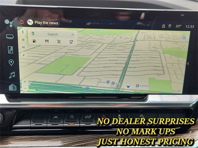 - Audio system, Chevrolet Infotainment 3 Premium system with Google built-in compatibility (select service plan required, terms and limitations apply) including navigation capability, 13.4" diagonal HD color touchscreen, includes multi-touch display, AM/FM stereo, Bluetooth® streaming audio for music and most phones; featuring Wireless Apple CarPlay and Wireless Android Auto capability for compatible phones, advanced voice recognition, in-vehicle apps, personalized profiles for infotainment and vehicle settings