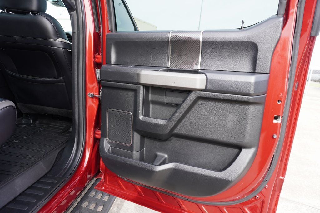 This 2018 Ford F-150 Raptor in Ruby Red Metallic includes the following features: 3.5L V6 EcoBoost 10-Speed Automatic 4WD Equipment Group 802A Luxury (10-Way Power Driver & Passenger Seats, 360 Degree Camera, 4.10 Front Axle w/Torsen Differential, 8 Productivity Screen, Advanced Security Pack, Ambient Lighting - Ice Blue Color Only, BLIS Blind Spot Information System, Dual-Zone Electronic Automatic Temperature Control, Heated Steering Wheel, Inflatable Rear Safety Belts, Integrated Trailer Brake Controller, Intelligent Access w/Push-Button Start, LED Box Lighting, LED Sideview Mirror Spotlights, Memory System (Seat, Pedal, Exterior Mirror), Power Glass Heated Sideview Mirrors, Power Tilt/Telescoping Steering Column w/Memory, Power-Adjustable Pedals, Power-Sliding Rear Window, Pro Trailer Backup Assist, Radio: B&O Play Premium Audio System, Remote Start System w/Remote Tailgate Release, SYNC 3, SYNC Connect, Tailgate Applique FORD, Universal Garage Door Opener, and Voice-Activated Touchscreen Navigation System), GVWR: 7,050 lbs Payload Package, Raptor Carbon Fiber Package (Unique Carbon Fiber Shift Knob), Raptor Exterior Graphics Package, Raptor Hood Graphics Package, Raptor Technology Package (Adaptive Cruise Control w/Collision Mitigation, Auto High Beam, and Lane-Keeping System), 4WD, 17 Cast Aluminum Wheels, 17 Forged Aluminum Bead-Lock Capable Wheels, 4-Wheel Disc Brakes, 7 Speakers, 8-Way Power Driver's Seat w/Power Lumbar, ABS brakes, Air Conditioning, Alloy wheels, AM/FM radio: SiriusXM, Auto-dimming Rear-View mirror, Brake assist, CD player, Compass, Delay-off headlights, Driver door bin, Driver vanity mirror, Dual front impact airbags, Dual front side impact airbags, Electronic Locking w/4.10 Axle Ratio, Electronic Stability Control, Emergency communication system: 911 Assist, Exterior Parking Camera Rear, Front anti-roll bar, Front Bucket Seats, Front Center Armrest, Front fog lights, Front reading lights, Front wheel independent suspension, Fully automatic headlights, Heated Leather 40/Console/40 Front Seats, Illuminated entry, Leather steering wheel, Low tire pressure warning, Occupant sensing airbag, Outside temperature display, Overhead airbag, Overhead console, Panic alarm, Passenger door bin, Passenger vanity mirror, Power door mirrors, Power driver seat, Power steering, Power windows, Radio data system, Rear Parking Sensors, Rear reading lights, Rear step bumper, Rear window defroster, Remote keyless entry, Security system, Speed control, Speed-sensing steering, Split folding rear seat, Steering wheel mounted audio controls, SYNC, Tachometer, Tailgate Step w/Tailgate Lift Assist, Telescoping steering wheel, Tilt steering wheel, Traction control, Trip computer, Twin Panel Moonroof, Unique Cloth Trim Seats, and Variably intermittent wipers. Ruby Red Metallic 2018 Ford F-150 Raptor 4WD 10-Speed Automatic 3.5L V6 EcoBoost 4WD.