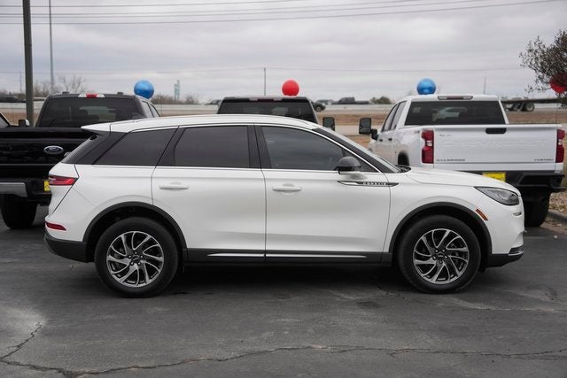 This 2022 Lincoln Corsair Standard in Pristine White Metallic Tri-Coat comes with the following features: 2.0L I4 8-Speed Automatic FWD Equipment Group 100A, Corsair Standard, 4D Sport Utility, 2.0L I4, 8-Speed Automatic, FWD, Pristine White Metallic Tri-Coat, Ebony w/Lincoln Soft Touch Heated Comfort Seats, 10 Speakers, 18 Bright Machined Aluminum Wheels, 3.81 Axle Ratio, 4-Wheel Disc Brakes, ABS brakes, Air Conditioning, Alloy wheels, AM/FM radio: SiriusXM, Auto High-beam Headlights, Auto-dimming Rear-View mirror, Automatic temperature control, Brake assist, Bumpers: body-color, Compass, Delay-off headlights, Driver door bin, Driver vanity mirror, Dual front impact airbags, Dual front side impact airbags, Electronic Stability Control, Emergency communication system: 911 Assist, Four wheel independent suspension, Front anti-roll bar, Front Bucket Seats, Front Center Armrest, Front dual zone A/C, Front reading lights, Fully automatic headlights, Heated door mirrors, Heated front seats, Illuminated entry, Knee airbag, Lincoln Soft Touch Heated Comfort Seats, Low tire pressure warning, Memory seat, Occupant sensing airbag, Outside temperature display, Overhead airbag, Overhead console, Panic alarm, Passenger door bin, Passenger vanity mirror, Power door mirrors, Power driver seat, Power Liftgate, Power passenger seat, Power steering, Power windows, Radio data system, Radio: Lincoln Premium Audio System w/MP3, Rear anti-roll bar, Rear Parking Sensors, Rear reading lights, Rear seat center armrest, Rear window defroster, Rear window wiper, Remote keyless entry, Roof rack: rails only, Security system, SiriusXM Radio, Speed control, Speed-sensing steering, Speed-Sensitive Wipers, Split folding rear seat, Spoiler, Steering wheel mounted A/C controls, Steering wheel mounted audio controls, SYNC 3 Communications & Entertainment System, Tachometer, Telescoping steering wheel, Tilt steering wheel, Traction control, Trip computer, Variably intermittent wipers, and Wheels: 18 Warm Painted Alloy.