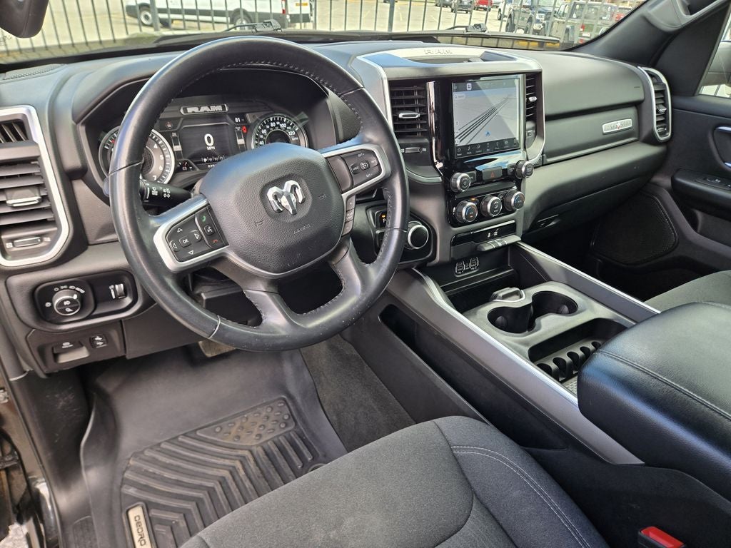 This 2022 Ram 1500 Big Horn/Lone Star in Diamond Black Crystal Pearlcoat includes the following features: HEMI 5.7L V8 Multi Displacement VVT 8-Speed Automatic RWD Big Horn Level 1 Equipment Group (2nd Row In Floor Storage Bins, 4G LTE Wi-Fi Hot Spot, 8.4 Touchscreen Display, Apple CarPlay, Auto-Dimming Exterior Driver Mirror, Auto-Dimming Rear-View Mirror, Black Exterior Mirrors, Black Premium Power Mirrors, Bluetooth® Handsfree Phone & Audio, Class IV Receiver Hitch, Cluster 3.5 TFT Color Display, Connectivity - US/Canada, Convex Wide-Angle Mirror Insert, Exterior Mirrors Courtesy Lamps, Exterior Mirrors w/Heating Element, Exterior Mirrors w/Supplemental Signals, For Details, Visit DriveUconnect.com, Global Telematics Box Module (TBM), Glove Box Lamp, Google Android Auto, GPS Antenna Input, Integrated Center Stack Radio, Power 2-Way Driver Lumbar Adjust, Power 8-Way Driver Seat, Power Adjustable Pedals, Power-Folding Mirrors, Radio: Uconnect 5 W w/8.4 Display, Rear Dome w/On/Off Switch Lamp, Rear Power Sliding Window, Rear Window Defroster, SiriusXM Radio Service, SiriusXM Satellite Radio, Sun Visors w/Illuminated Vanity Mirrors, Universal Garage Door Opener, and USB Host Flip), Quick Order Package 27R Lone Star (Regional) (Lone Star Badge), 3 Rear Seat Head Restraints, 3.21 Rear Axle Ratio, 4 Way Front Headrests, 4-Wheel Disc Brakes, 48V Belt Starter Generator, 6 Speakers, ABS brakes, Air Conditioning, Air Conditioning ATC w/Dual Zone Control, All R1 High Radios, All Radio Equipped Vehicles, Alloy wheels, AM/FM radio, Anti-Spin Differential Rear Axle, Brake assist, Bumpers: chrome, Cloth Bench Seat, Cluster 7.0 TFT Color Display, Compass, Connected Travel & Traffic Services, Delay-off headlights, Disassociated Touchscreen Display, Driver door bin, Dual front impact airbags, Dual front side impact airbags, Electronic Stability Control, Emergency communication system: SiriusXM Guardian, Exterior Parking Camera Rear, Front anti-roll bar, Front Center Armrest w/Storage, Front fog lights, Front License Plate Bracket, Front reading lights, Front Seat Back Map Pockets, Front wheel independent suspension, Fully automatic headlights, GPS Navigation, HD Radio, Heated door mirrors, Illuminated entry, Integrated Voice Command w/Bluetooth®, Leather steering wheel, Low tire pressure warning, Manufacturer's Statement of Origin, Occupant sensing airbag, Outside temperature display, Overhead airbag, Overhead console, Panic alarm, Passenger door bin, Passenger vanity mirror, Power door mirrors, Power steering, Power windows, Radio data system, Radio: Uconnect 3 w/5 Display, Radio: Uconnect 5 Nav w/8.4 Display, Rear 60/40 Folding Seat, Rear anti-roll bar, Rear seat center armrest, Rear step bumper, Remote keyless entry, SiriusXM w/360L, Speed control, Split folding rear seat, Steering wheel mounted audio controls, Tachometer, Telescoping steering wheel, Tilt steering wheel, Traction control, Trip computer, Variably intermittent wipers, Voltmeter, Wheels: 18 x 8 Cast-Aluminum Painted, and Wheels: 20 x 9 Aluminum Chrome Clad (WRK)