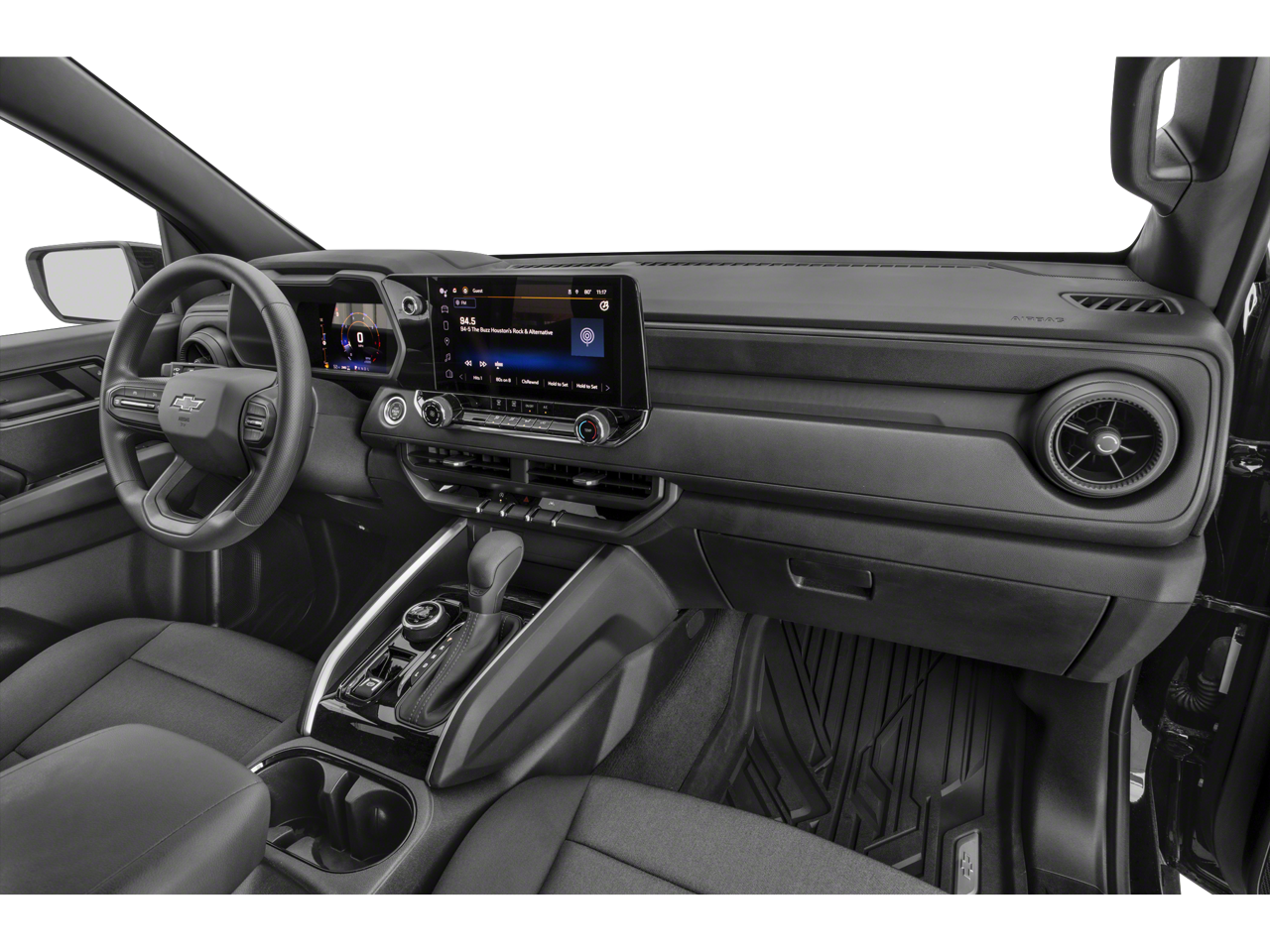Black 2023 Chevrolet Colorado Trail Boss 4WD 8-Speed Automatic 2.7L Turbo 4WD, 1st & 2nd Row All-Weather Floor Liner (LPO), 4-Wheel Disc Brakes, 6 Speakers, 6-Speaker Audio System Feature, 8-Way Power Driver Seat Adjuster, Air Conditioning, Alloy wheels, Apple CarPlay/Android Auto, Auto High-beam Headlights, Brake assist, Chevy Safety Assist, Cloth Seat Trim, Delay-off headlights, Electronic Automatic Cruise Control, Electronic Stability Control, EZ-Lift & Lower Tailgate, Following Distance Indicator, IntelliBeam Automatic High Beam On/Off, Lane Keep Assist w/Lane Departure Warning, Manual Rear-Sliding Window, Navigation System, Power Driver Lumbar Control Seat Adjuster, Power steering, Power windows, Preferred Equipment Group 0TR, Radio data system, Rear-Window Electric Defogger, Remote keyless entry, Security system, SiriusXM Radio, Speed-sensing steering, Split folding rear seat, Steering Wheel Mounted Audio Controls, Steering wheel mounted audio controls, StowFlex Tailgate Storage Compartment, Tailgate Keyed Cylinder Lock, Tilt steering wheel, Traction control, Trail Boss Convenience Package, Trail Boss Convenience Package II.