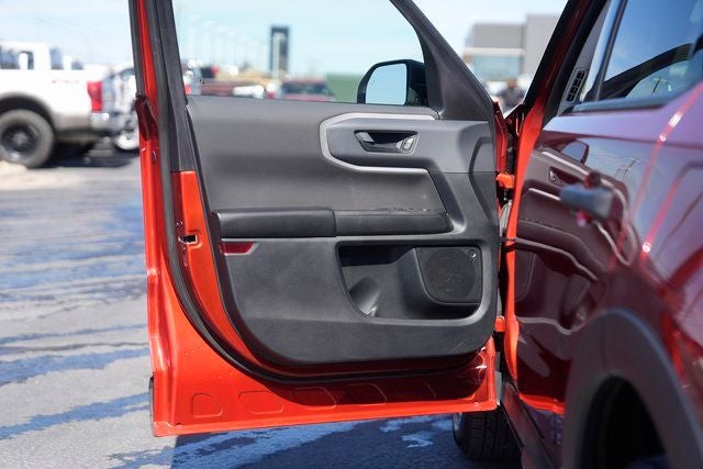 This 2023 Ford Bronco Sport Big Bend in Hot Pepper Red Tinted Clearcoat comes with the following features: 1.5L EcoBoost 8-Speed Automatic 4WD Class II Trailer Tow Package w/Trailer Sway Control, Convenience Package (Front Driver & Passenger Seatback Zipper Pockets, Heated Front Bucket Seats, Intelligent Access (Lock/Unlock), Leather-Wrapped Steering Wheel, LED Fog Lamps, Rear Parking Sensors, Universal Garage Door Opener (UGDO), and Wireless Charging Pad), Equipment Group 200A, Bronco Sport Big Bend, 4D Sport Utility, 1.5L EcoBoost, 8-Speed Automatic, 4WD, Hot Pepper Red Tinted Clearcoat, Ebony w/Unique Cloth Front Bucket Seats, 3.80 Axle Ratio, 4-Wheel Disc Brakes, 4G LTE Wi-Fi Hotspot Credit, 6 Speakers, ABS brakes, Air Conditioning, Alloy wheels, AM/FM radio: SiriusXM, AM/FM Stereo, Auto High-beam Headlights, Automatic temperature control, Brake assist, Compass, Delay-off headlights, Driver door bin, Driver vanity mirror, Dual front impact airbags, Dual front side impact airbags, Electronic Stability Control, Emergency communication system: SYNC 3 911 Assist, Four wheel independent suspension, Front anti-roll bar, Front Bucket Seats, Front Center Armrest, Front License Plate Bracket, Front reading lights, Fully automatic headlights, Heated door mirrors, Illuminated entry, Knee airbag, Low tire pressure warning, Occupant sensing airbag, Outside temperature display, Overhead airbag, Overhead console, Panic alarm, Passenger door bin, Passenger vanity mirror, Power door mirrors, Power steering, Power windows, Radio data system, Rear anti-roll bar, Rear reading lights, Rear seat center armrest, Rear window defroster, Rear window wiper, Remote keyless entry, Security system, SiriusXM, Speed control, Speed-sensing steering, Speed-Sensitive Wipers, Split folding rear seat, Steering wheel mounted audio controls, SYNC 3 Communications & Entertainment System, SYNC 3/Apple CarPlay/Android Auto, Tachometer, Telescoping steering wheel, Tilt steering wheel, Traction control, Trip computer, Unique Cloth Front Bucket Seats, Variably intermittent wipers, and Wheels: 17 Carbonized Gray-Painted Aluminum.