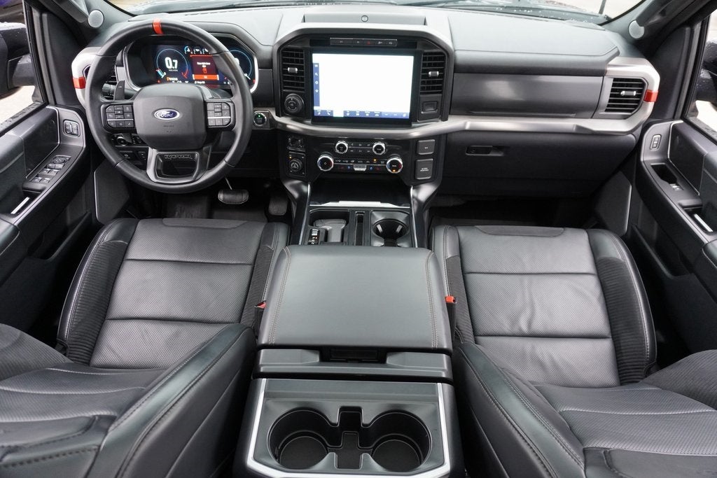 This 2023 Ford F-150 Raptor in Black Metallic includes the following features: 3.5L V6 EcoBoost 10-Speed Automatic 4WD Equipment Group 801A Standard, GVWR: 7,300 lbs Payload Package, Moonroof & Tailgate (Power Tailgate and Twin Panel Moonroof), 4WD, 17 Cast Aluminum Wheels, 18 Speakers, 4-Wheel Disc Brakes, ABS brakes, Adaptive suspension, Adjustable pedals, Air Conditioning, Alloy wheels, AM/FM radio: SiriusXM with 360L, Auto High-beam Headlights, Auto Start-Stop Removal (DISC), Auto tilt-away steering wheel, Auto-dimming door mirrors, Auto-dimming Rear-View mirror, Automatic temperature control, Brake assist, Bumpers: body-color, Compass, Delay-off headlights, Driver door bin, Driver vanity mirror, Dual front impact airbags, Dual front side impact airbags, Electronic Locking w/4.10 Axle Ratio, Electronic Stability Control, Emergency communication system, Exterior Parking Camera Rear, Front anti-roll bar, Front Bucket Seats, Front Center Armrest, Front dual zone A/C, Front fog lights, Front reading lights, Front wheel independent suspension, Fully automatic headlights, Garage door transmitter, Heated door mirrors, Heated front seats, Heated rear seats, Heated steering wheel, Illuminated entry, Inclination/Intrusion Sensor Removal, Lane Departure Warning System, Leather Trim Seats w/Heated 2nd Row, Low tire pressure warning, Memory seat, Navigation system: Connected Navigation, Occupant sensing airbag, Outside temperature display, Overhead airbag, Overhead console, Panic alarm, Passenger door bin, Passenger vanity mirror, Pedal memory, Power door mirrors, Power driver seat, Power passenger seat, Power steering, Power windows, Radio data system, Radio: B&O Unleashed Sound System by Bang & Olufsen, Rain sensing wipers, Rear reading lights, Rear step bumper, Rear window defroster, Remote keyless entry, Security system, Speed control, Speed-sensing steering, Split folding rear seat, Steering Wheel Heat Removal (DISC), Steering wheel memory, Steering wheel mounted audio controls, SYNC 4 w/Enhanced Voice Recognition, Tachometer, Telescoping steering wheel, Tilt steering wheel, Tough Bed Spray-In Bedliner, Traction control, Trip computer, Turn signal indicator mirrors, Variably intermittent wipers, and Ventilated front seats. Black Metallic CARFAX One-Owner. 2023 Ford F-150 Raptor 4WD 10-Speed Automatic 3.5L V6 EcoBoost 4WD.