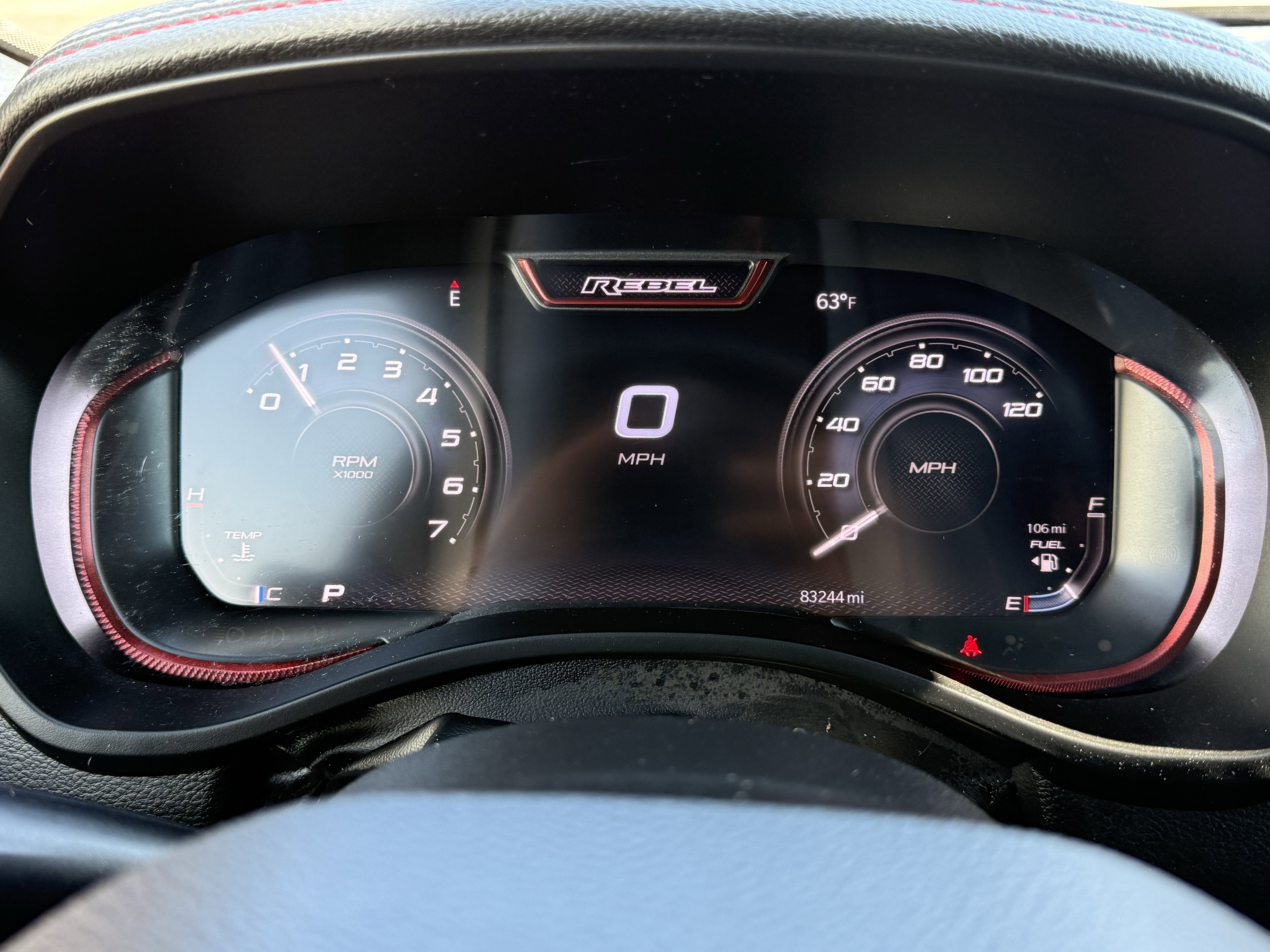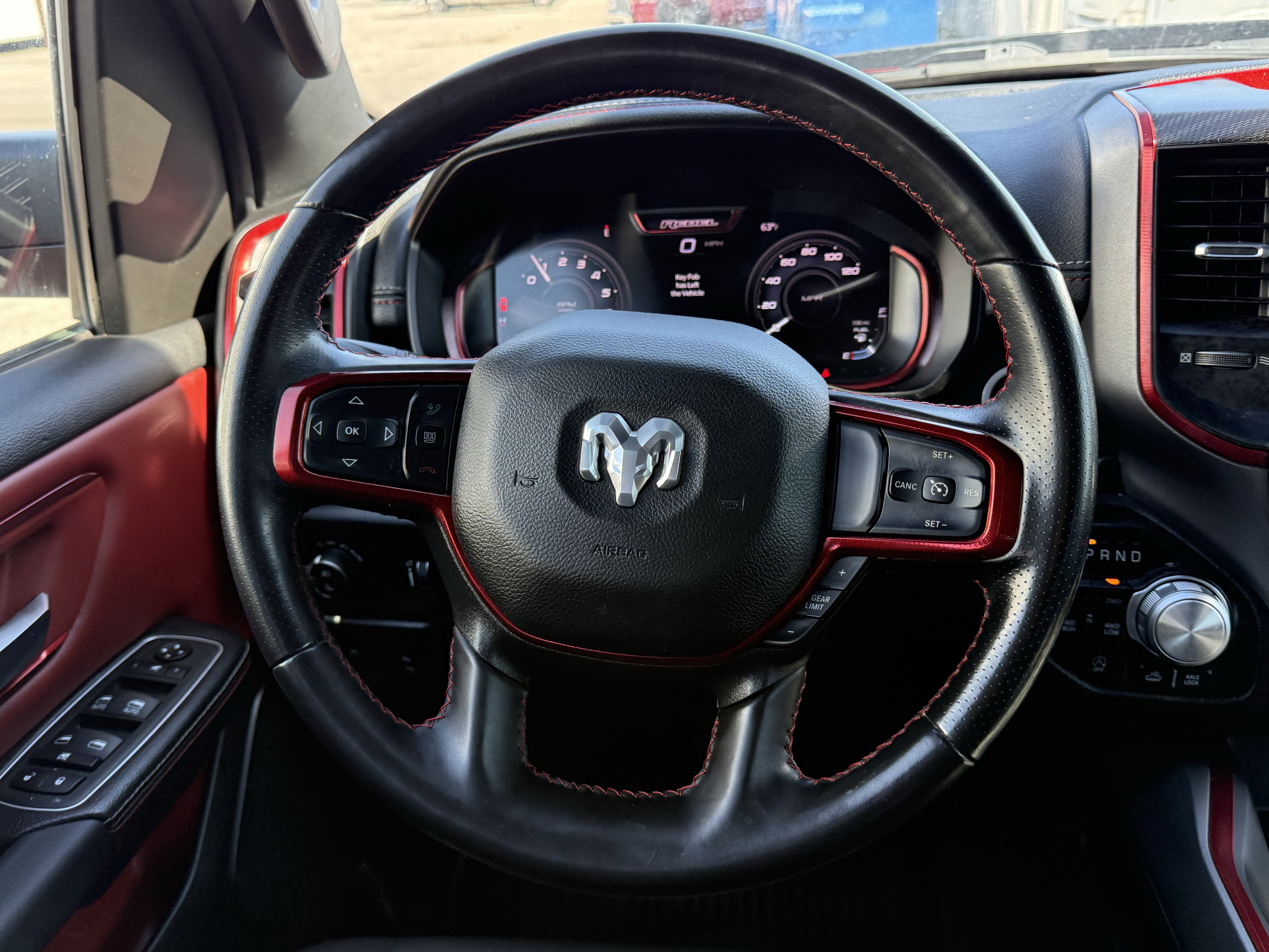 The Rebel's striking Delmonico Red Pearlcoat exterior and bold, rugged styling command attention on the road. Step inside and you'll be greeted by a spacious and well-appointed cabin, featuring premium cloth and vinyl seats, a 12-inch touchscreen display, and a suite of connectivity and safety features that keep you informed, entertained, and secure.